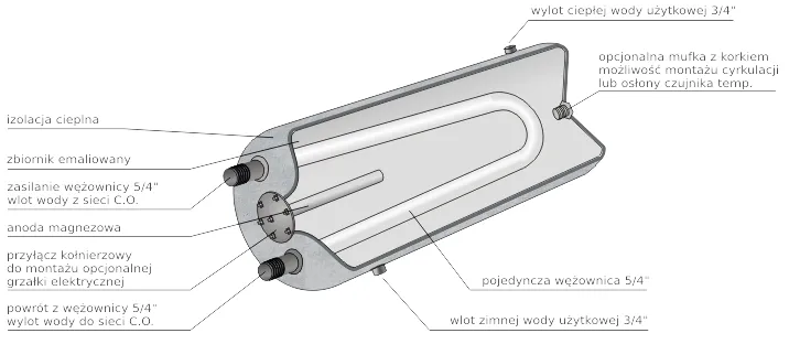 - Izolacja termiczna zbiornika minimalizuje straty ciepła, co zwiększa efektywność energetyczną.